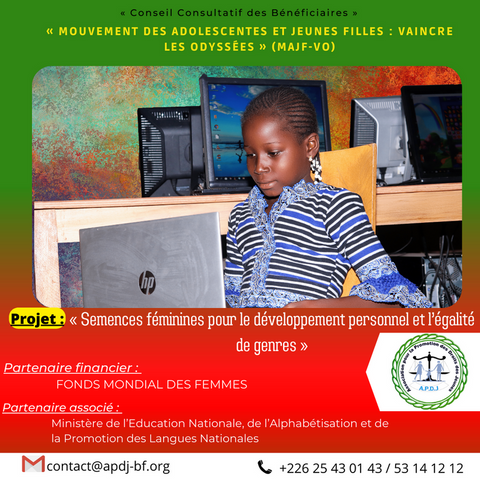 RESUME : Stratégies formatives pour contribuer à transformer les faiblesses des adolescentes et jeunes filles en forces afin qu’elles soient en charge de leur avenir, dans toute sa splendeur et sa puissance, et de toutes les façons qu’elles le veulent. Le projet se veut de construire avec elles les meilleures manières d’exploiter tous leurs potentiels en permanence.